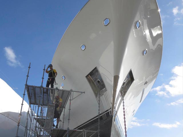 deck crane removal and a full topside paint job. Meanwhile the engine room was overhauled and a new galley range, ovens and equipment also installed.